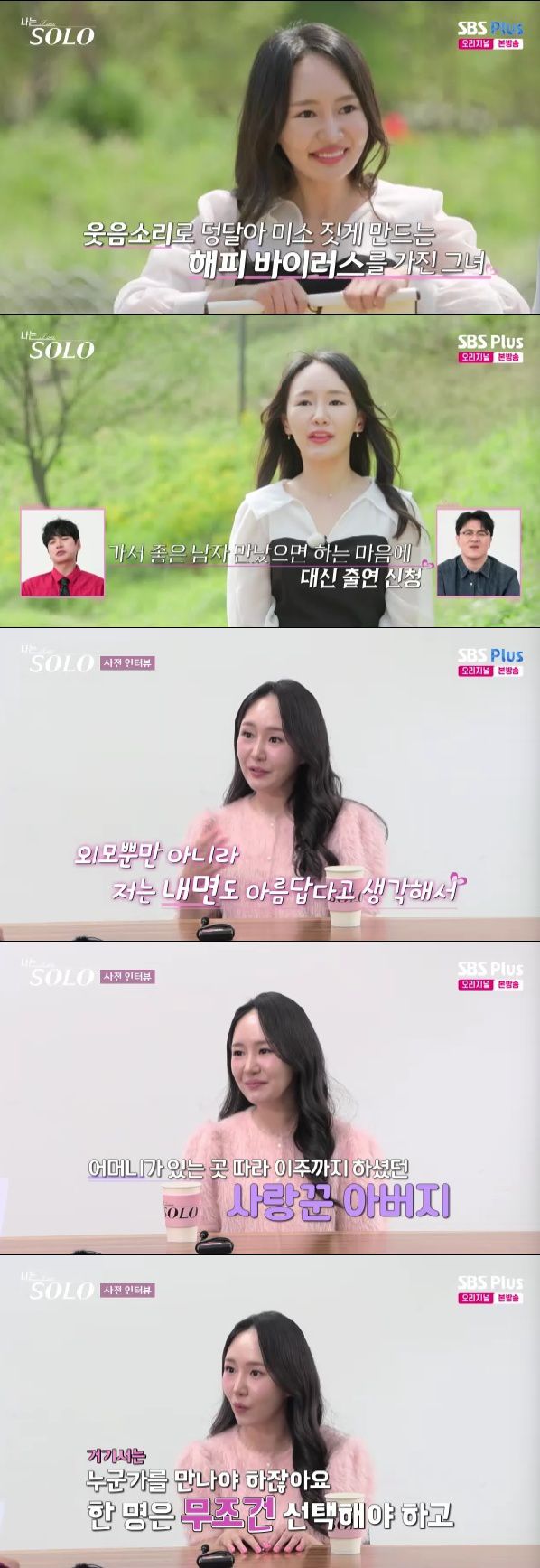 순자는 미소가 예쁜 미인이다. 순자는 "작년에 엄마와 동생이 '나는 솔로' 보다가 좋은 남성이 많으니 너도 가서 좋은 남자 만났으면 좋겠다며 신청을 해줬다. 이 영상이 내 식전 영상으로 쓰이면 좋겠다. 그 정도로 결혼할 사람을 만나고 싶다"라며 간절한 마음을 전했다.