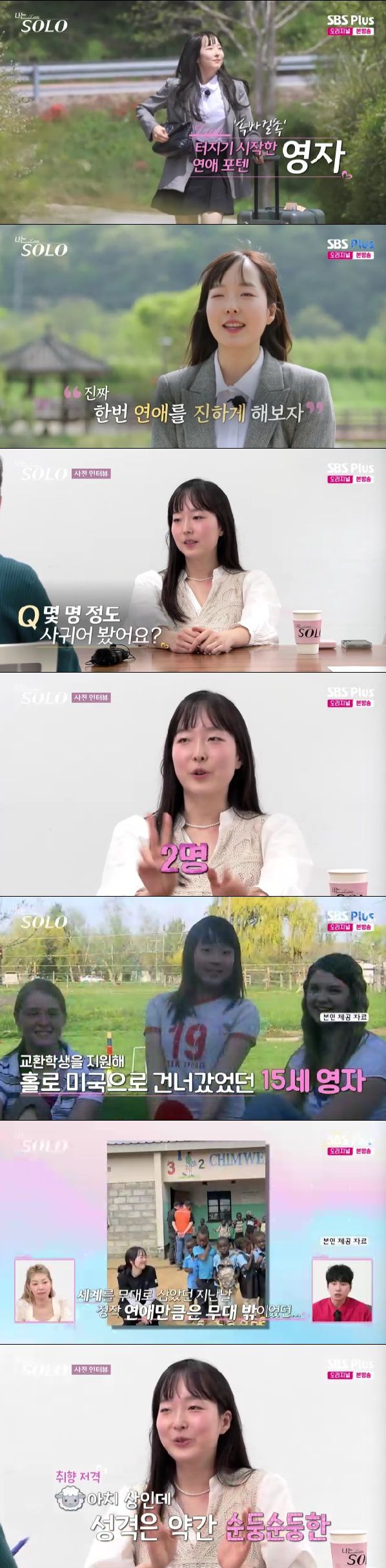 귀여운 스타일의 영자가 입장했다. 영자는 "다들 준수하게 생겼다. 한번 연애를 진하게 해보자 싶다. 모여서 다같이 하는 기회가 없지 않냐"라며 기대했다.