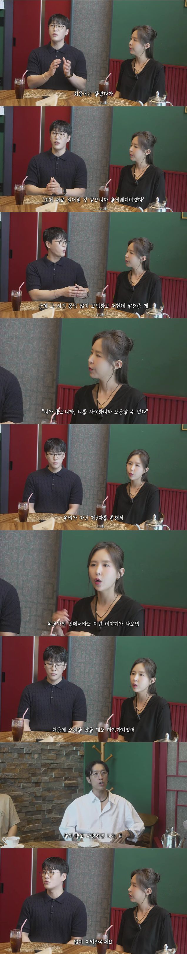 문원은 "그걸 알고 같이 만났다. 처음에는 몰랐다가 서로 깊어질 것 같아 솔직해져야겠다 싶더라. 준비의 시간도 필요했을 거다. 그 시간 동안 많이 고민하고 말해주는 게 '너가 좋으니까, 너를 사랑하니까 포용할 수 있다'라는 한 마디가 엄청 힘이 되었다"라며 고마워했다.