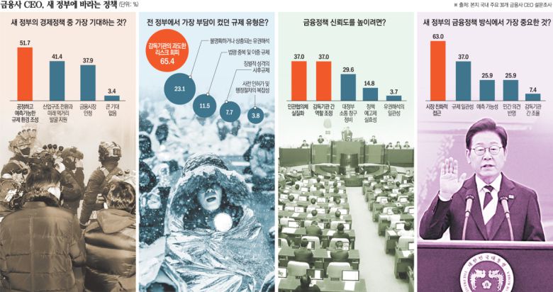 A 금융사 CEO는 “이전 정부의 금융 정책은 산발적이며 성급하게 추진되는 경우가 많았다”며 “업계와 충분히 협의하고 조율해 일관성 있는 정책 설계와 체계적인 이행이 무엇보다 중요하다”고 지적했다.