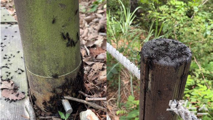 2일 오전 인천광역시 계양산 등산로 곳곳에 러브버그가 붙어있는 모습. 김보영 크리에이터 |
