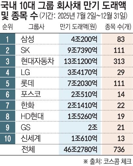 10대 그룹 하반기 46조 회사채 만기… 자금조달 여건도 희비 교차 [2025 상반기 정기평가 下]②