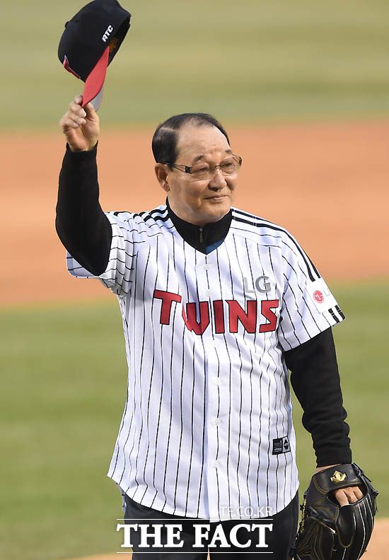 2017년 프로야구 개막전 시구자로 나서 팬들에게 인사를 하고 있는 LG 이광환 전 감독. 이 전 감독은 2일 향년 77세를 일기로 별세했다./더팩트 DB.