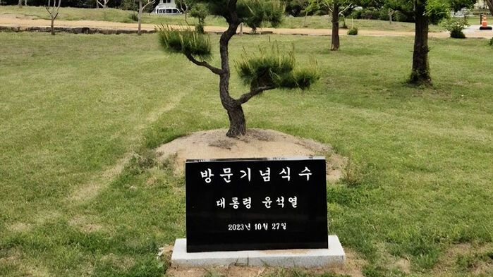 '방문기념식수 대통령 윤석열'이라고 쓰여진 검은 비석인데요, 서원 관리자도 모르는 사이에 어느 날 갑자기 설치됐다가 최근 돌연 사라졌다는 겁니다.