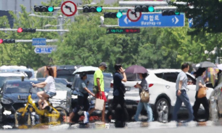 기상청은 이날 “전국 대부분 지역에 폭염특보가 발효된 가운데 경기와 강원 동해안, 충청권, 남부 지역, 제주도 동부 등은 체감온도가 35도 안팎으로 오른다”고 예보했다. 온열 질환이 발생할 가능성이 크니 야외 활동을 자제하고, 식중독을 예방하기 위해 음식 관리를 철저히 해 달라고 기상청은 당부했다.