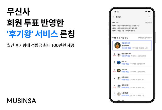 무신사, '후기왕' 서비스 도입…최대 100만원 적립금