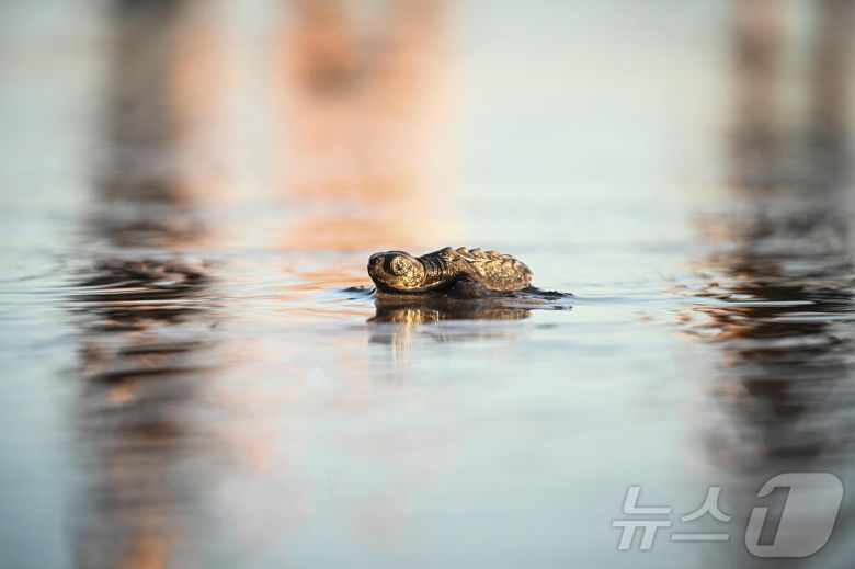 멸종위기종 '켐프리들리 바다거북'이 파나마시티에서 약 100km 떨어진 푼타 차메 해변에 방류된 후 바다로 들어가고 있다. (특정 기사 내용과는 무관한 자료사진) ⓒ AFP=뉴스1 ⓒ News1 김경민 기자