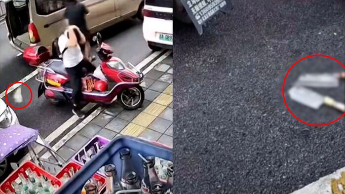중국에서는 느닷없이 행인을 향해 흉기가 떨어지는 일이 발생했습니다.