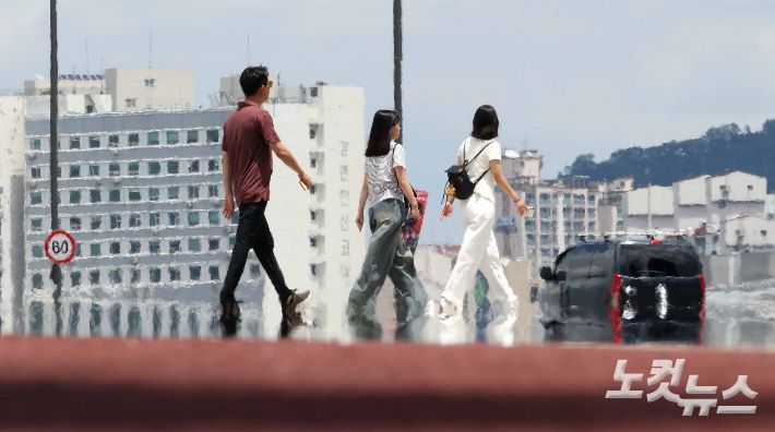 도로에 지열로 인한 아지랑이가 피어오르고 있다. 박종민 기자 |