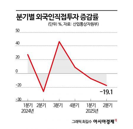올해 상반기 외국인직접투자가 15% 가까이 급감한 것으로 나타났다. 도널드 트럼프 미국 대통령 취임 후 진행된 미국의 관세 조치와 비상계엄과 대통령 탄핵 등 국내 정치적 불안정이 투자 감소로 이어졌다.