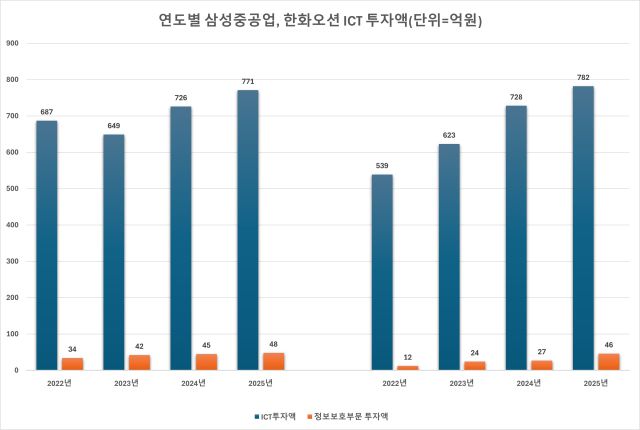 회사 측 설명대로 HD한국조선해양과 HD현대중공업을 합산할 경우, 2025년 기준 ICT 투자액 952억원, 정보보호 부문 투자액 67억원, ICT 인력 250.1명, 정보보호 부문 인력 39.8명으로 집계된다. 이는 삼성중공업과 한화오션보다는 많지만, 2022년 HD현대중공업 개별 투자에 크게 못 미치는 수치다.