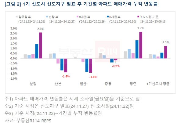 부동산R114 "1기 신도시 선도지구 발표 이후 분당·평촌만 집값 상승"