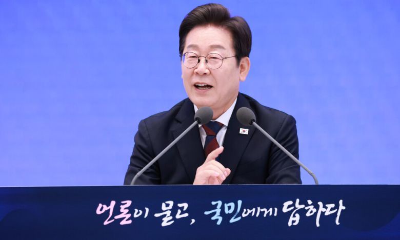 취임 30일을 맞은 이재명 대통령은 3일 오전 청와대 영빈관에서 열린 ‘대통령의 30일, 언론이 묻고 국민에게 답하다’ 기자회견에서 강원도민일보 기자의 한반도 평화 정착 방안과 대북 정책 구상에 대한 질문에 “(북한과) 지금 너무 적대화되고 불신이 심해서 쉽지는 않을 것으로 예상한다”면서도 “하나씩 하나씩 (남북 간 긴장을) 완화해 나가야 한다”며 남북관계 개선에 기대를 나타냈다.