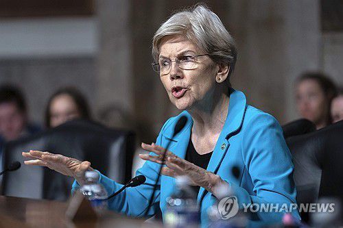 (워싱턴DC AP=연합뉴스 자료사진) 2025년 6월 18일 미국 연방의회 의사당에서 열린 상원 군사위원회 청문회에서 피트 헤그세스 국방장관을 상대로 질문하는 엘리자베스 워런(민주당·매사추세츠) 상원의원. 2025.7.3.