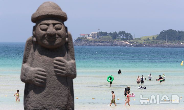 [제주=뉴시스] 우장호 기자 = 무더위가 기승을 부린 3일 오후 제주시 한림읍 협재해수욕장을 찾은 피서객들이 바닷물에 발을 담그며 더위를 식히고 있다. 기상청은 이날 제주 지역 장마가 사실상 지난달 26일 종료됐다고 발표했다. 올해 제주 장마 기간은 지난달 12~26일로 2주간이었으며, 이는 기상 관측 사상 가장 일찍 종료된 장마로 기록됐다. 2025.07.03. woo1223@newsis.com |