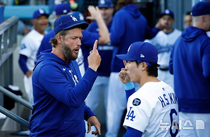 [로스앤젤레스=AP/뉴시스] LA 다저스의 김혜성(오른쪽)이 1일(현지 시간) 미 캘리포니아주 로스앤젤레스 다저 스타디움에서 열린 2025 메이저리그 시카고 화이트삭스와 경기 전 더그아웃에서 투수 클레이튼 커쇼와 대화하고 있다. 김혜성은 이날 3타수 무안타 1삼진을 기록했고 다저스는 6-1로 승리했다. 2025.07.02. |