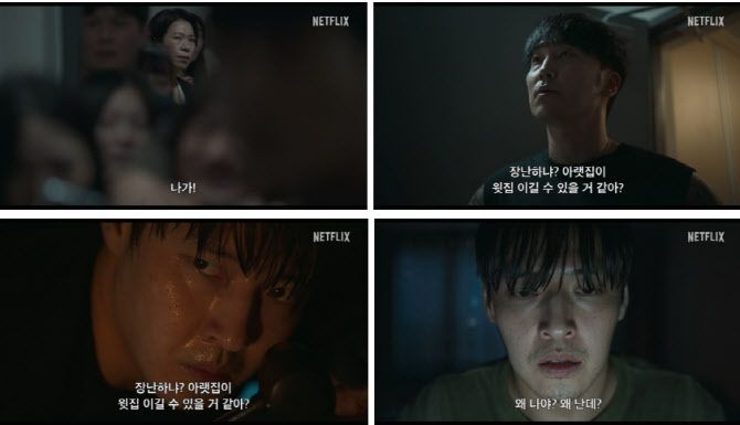 함께 공개된 메인 예고편은 층간 소음으로 인해 아파트 이웃 간의 의심과 갈등이 점차 깊어지며, 예측불허의 상황 속으로 빠져들게 되는 긴장감 넘치는 이야기가 시선을 사로잡는다. 우성은 영혼까지 다 끌어모아 겨우 내 집 마련에 성공했지만, 떨어지는 집값에 회사 비품 털기는 물론 야간 배달 아르바이트까지 병행하며 짠내 나는 하루하루를 버틴다. 하지만, 지옥 같은 악몽은 집에서 다시 시작된다. 밤마다 울리는 정체불명의 층간 소음으로 잠도 못 이루는데, 엎친 데 덮친 격으로 층간 소음의 범인으로 몰리며 억울한 나날을 보낸다. 버티다 못한 우성은 아파트 최고층 펜트하우스에 사는 입주민 대표 은화를 찾아가지만, GTX 개통을 앞두고 시끄러운 일이 생기지 않길 바라는 그는 냉소적인 웃음으로 우성을 달랜다. 제발 조용히 해달라는 아랫집의 쪽지에, 누군가 자신을 몰래 지켜보고 있는 것 같은 예감이 든 우성은 “아랫집 사람들이 정상이 아닌 것 같아요”라며 극도로 예민해지기 시작한다. 층간 소음으로 인한 이웃 간의 갈등은 점점 폭주하기 시작하고, 아랫집은 우성을 향해 “네가 집에 있을 때만 소리가 난다고”라며 그를 조여오기 시작한다. 우성과 함께 층간 소음의 근원지를 찾아 나선 진호는 “아랫집이 윗집 이길 수 있을 것 같아?”라며 긴장감을 한층 고조시킨다. “아파트가 무슨 죄야? 결국 사람이 문제지”라는 은화의 의미심장한 대사와 함께 얼굴이 피 범벅이 된 채 넋이 나간 우성의 모습은 아파트에 몰아칠 폭풍 같은 전개에 대한 궁금증을 증폭시키며, 과연 그가 어떤 일을 마주하게 될지 기대감을 끌어올린다.