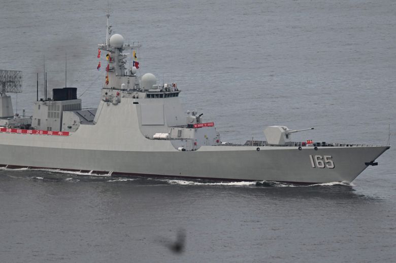 중국이 자체 개발한 항공모함을 호위하는 역할을 맡은 구축함이 3일(현지시간) 홍콩 항구로 입항하고 있다. [AFP] |