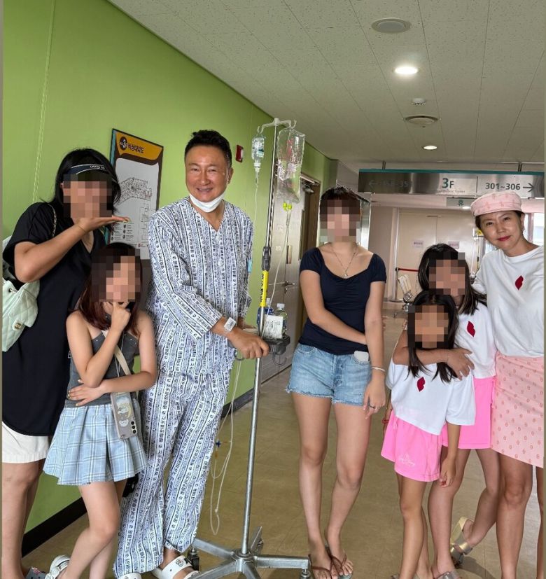 공개된 사진 속 주영훈은 링거를 매단 채 환자복 차림으로 서서 웃으며 포즈를 취하고 있다. 아내 이윤미와 두 딸 외에 여행을 함께하고 있는 다른 가족들의 모습도 확인할 수 있다.