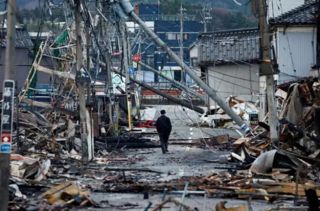 지난해 대규모 지진이 발생한 일본 노토반도에서 한 남성이 거리를 걸어가고 있다. [사진=로이터/연합뉴스]