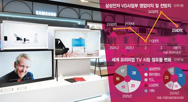 VD사업부는 올해 5월 창사 첫 비상 경영 체제를 선언했다. 중국 등 경쟁자들의 무서운 추격이 19년 연속 글로벌 TV 매출 1위를 기록해 온 아성을 깰 만큼 위협적이라는 위기 의식이 작용했다. 시장조사 기관 옴디아에 따르면 지난해 삼성전자의 글로벌 TV 시장 점유율은 28.3%로 30% 선이 무너졌고 중국 기업과의 격차는 매년 좁혀지고 있다.