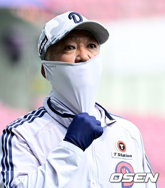 경기에 앞서 두산 고토 코치가 훈련을 지켜보고 있다. 2025.07.03 /jpnews@osen.co.kr