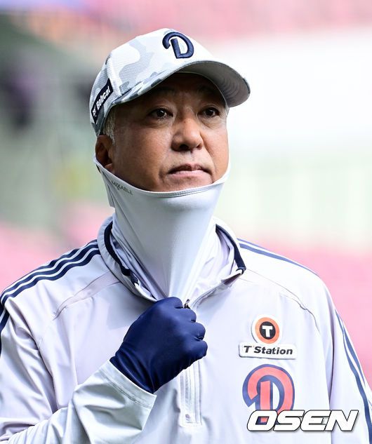 경기에 앞서 두산 고토 코치가 훈련을 지켜보고 있다. 2025.07.03 /jpnews@osen.co.kr