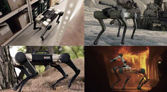 4족보행 로봇은 네 다리가 달린 로봇이다. 통상 ‘로봇개’로 불린다. 카메라와 라이다 등 센서를 탑재해 장애물을 인식하고, 가파른 경사로나 울퉁불퉁한 요철도 안정적으로 넘을 수 있어 산업 현장에서 순찰·방범용으로 쓰인다. 모듈형으로 자동 분사 시스템 등 기기를 탈부착할 수 있도록 설계해 군용 또는 소방용으로 활용할 수도 있다.