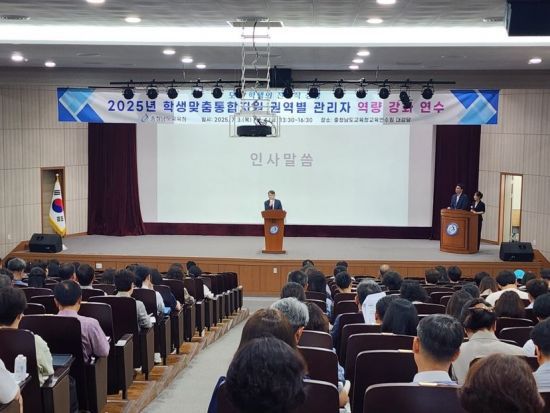 충남도교육청은 3일 오후 공주에 있는 도 교육청 교육연수원 대강당에서 도내 학교장과 담당 부장교사, 교육지원청 담당과장, 팀장 등 1500여 명을 대상으로 '2025 학생맞춤통합지원 권역별 관리자 역량 강화 연수'를 개최했다.