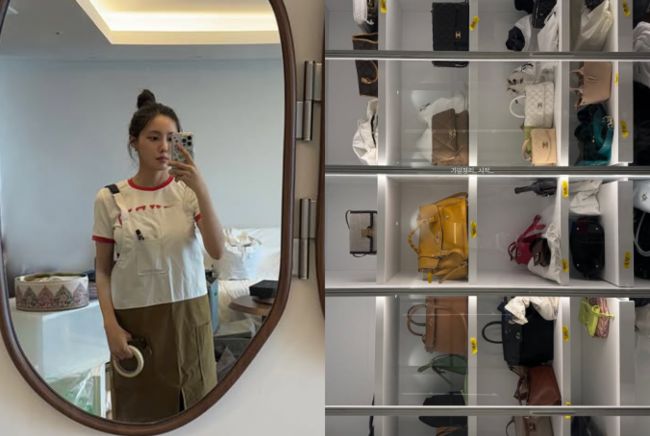 공개된 사진에는 유리로 된 장식장에 빼곡하게 들어있는 명품백들이 담겼다. 벽 한쪽을 가득 채운 장식장 안에는 에르메스부터 샤넬, 입생로랑, 루이비통까지 각양각색 고가의 명품백들이 줄지어져 있다.