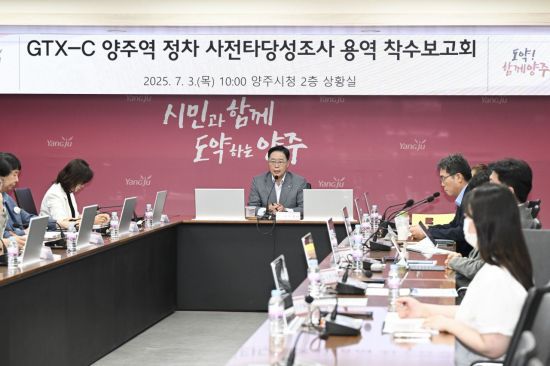 경기 양주시(시장 강수현)가 3일 오전 시청 2층 상황실에서 'GTX-C 양주역 정차 사전타당성 조사 용역 착수보고회'를 개최하고 '양주역 정차 실현'을 위한 본격적인 검토에 착수했다.
