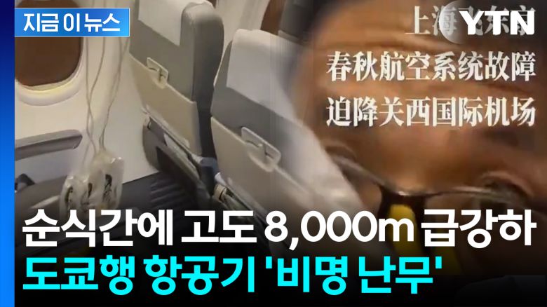 중국 상하이에서 일본 도쿄로 향하던 항공기가 기내 여압 장치 이상으로 긴급 착륙하는 과정에서 기체가 8천미터를 급강하해 승객들이 공포에 빠지는 일이 발생했습니다.