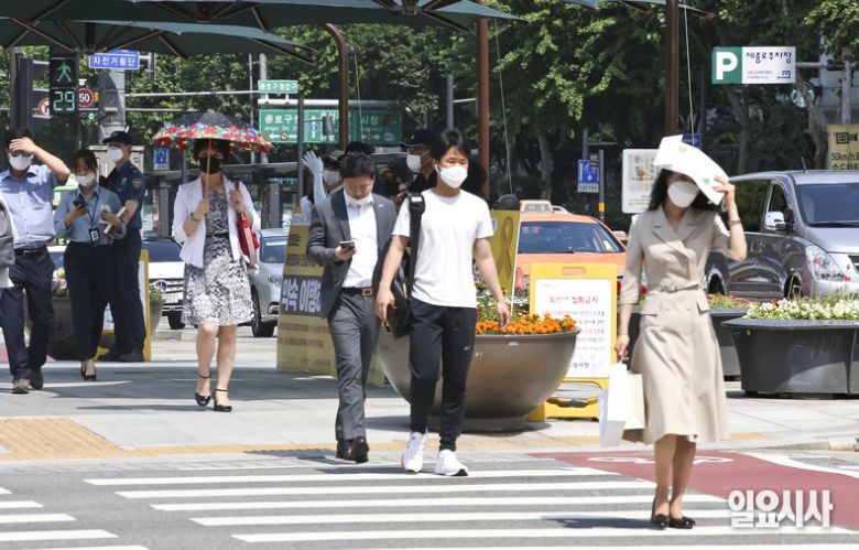 지난 1일, 서울 광화문 네거리를 지나는 시민들이 더위를 피하기 위해 발걸음을 재촉하고 있다. ⓒ고성준 기자 |