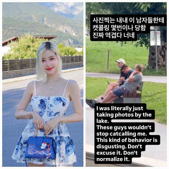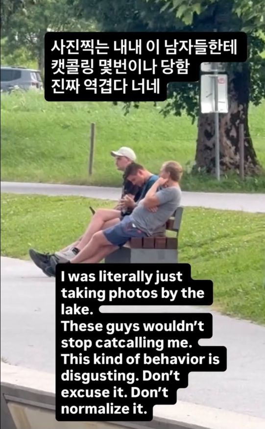 3일 DJ소다는 자신의 SNS에 벤치에 앉은 남성들이 담긴 사진을 업로드하며 “사진 찍는 내내 이 남자들한테 캣콜링 몇 번이나 당함. 진짜 역겹다 너네”라는 문구를 덧붙였다.