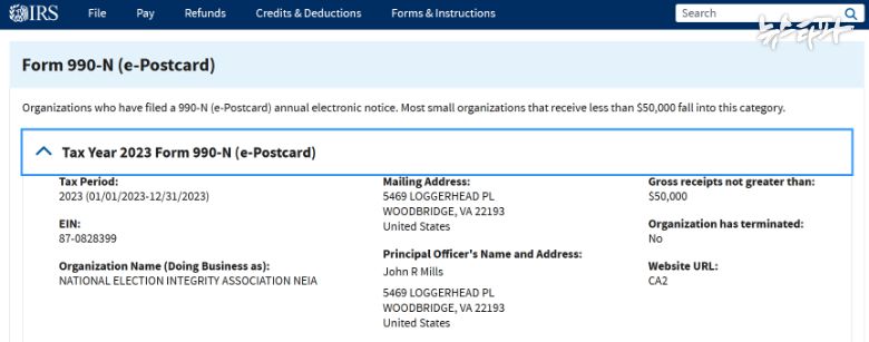 미국 국세청 홈페이지에서 국가선거투명성협회를 검색하니 버지니아주에 등록된 공익법인으로 나왔다. 연간 예산은 5만 달러 이하로 신고됐고, 설립자는 존 밀스라는 인물이었다. 존 밀스는 지난 5월 기자회견 때 모스탄의 바로 옆자리에 앉았던 인물이다.
