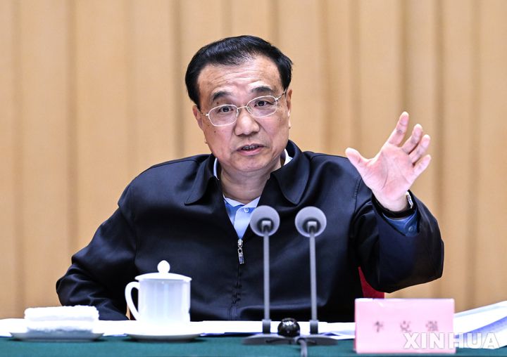 [쿤밍=신화/뉴시스] 중국 인민일보는 3일 고(故) 리커창 전 총리의 탄생 70주년 관련 논평을 게재해 눈길을 끌었다. 사진은 리 전 총리가 2022년 5월 18일 윈난성 쿤밍에서 열린 경제 좌담회에 참석한 당시 발언하는 모습. 2025.07.03