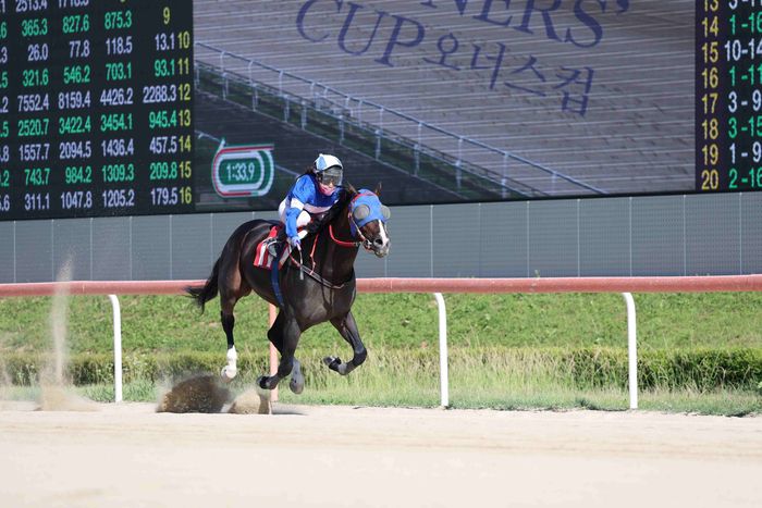 [스포츠서울 | 김용일 기자] 지난달 29일 한국마사회 렛츠런파크 부산경남에서 열린 제18회 Owners’ Cup(G3, 순위상금 5억원)에서 한강클래스(한국 4세, 김조은 마주, 구민성 조교사, 김혜선 기수)가 4마신 차로 깜짝 우승을 차지했다.
