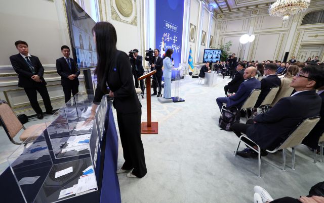 이번 회견의 가장 큰 변화는 형식에서 나타났다. 대통령실은 기존의 연단을 철거하고 대통령과 기자가 약 1.5m 거리에서 마주 앉는 형태로 구성했다. 회견장은 미디어월 앞에 앉은 이 대통령을 중심으로 기자들이 반원 형태로 둘러앉는 타운홀 미팅 방식으로 꾸려졌다.