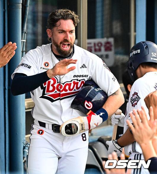 [OSEN=잠실, 지형준 기자] 3일 오후 서울 잠실구장에서 ‘2025 신한 SOL Bank KBO리그’ 두산 베어스와 삼성 라이온즈의 경기가 열렸다. 두산은 곽빈, 삼성은 최원태가 선발로 나섰다. 3회말 2사 2루에서 두산 케이브가 양의지의 1타점 좌전 적시타에 홈을 밟으며 더그아웃에서 동료선수들과 하이파이브를 하고 있다. 2025.07.03 /jpnews@osen.co.kr 이 기사의 카테고리는 언론사의 분류를 따릅니다.0공유하기