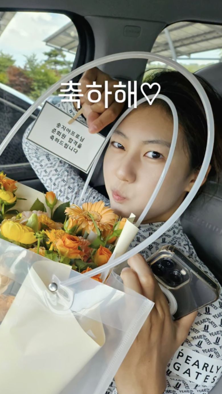 3일 박연수는 자신의 개인 계정에 "도와주신 프로님들 모두 감사 드려요. 그리고 누나를 위한 지욱이의 손편지♡ 너무 고마워"라는 글과 함께 사진을 게재했다. 송지아는 차 안에서 꽃다발을 품에 안고 '송지아 프로님 준회원 합격을 축하드립니다'라는 글이 담긴 쪽지를 손에 들고 미소 짓고 있다.