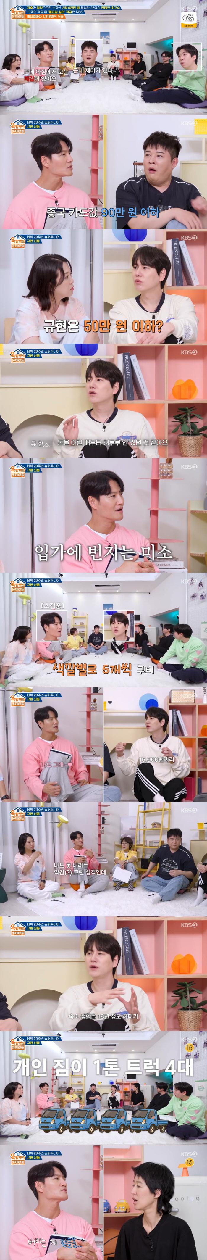 김종국은 "나는 물건을 잘 못 버리는 성격이다. 규현도 그렇냐"고 묻자, 규현은 "18년 동안 숙소 생활을 하다 최근 이사했는데 1톤 트럭 4대 분량의 짐이 나왔다"고 말해 놀라움을 자아냈다. 김종국은 "버리는 게 정말 힘들다"고 덧붙이며 공감했다.
