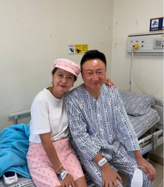 함께 올린 사진 속 그는 환자복 차림으로 병상에 앉아 있었고, 옆에는 아내 이윤미가 다정히 붙어 앉아 있었다. 마스크는 벗었고, 손목에는 입원 팔찌가 여전히 채워져 있었다.
