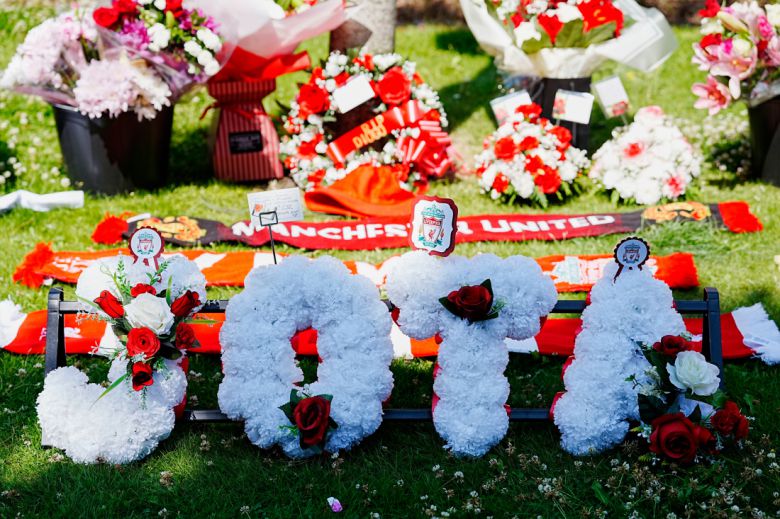 조타 ‘추모’ 3일 리버풀 홈구장인 안필드에 디오구 조타를 추모하는 헌화 장소가 마련됐다. AP연합뉴스