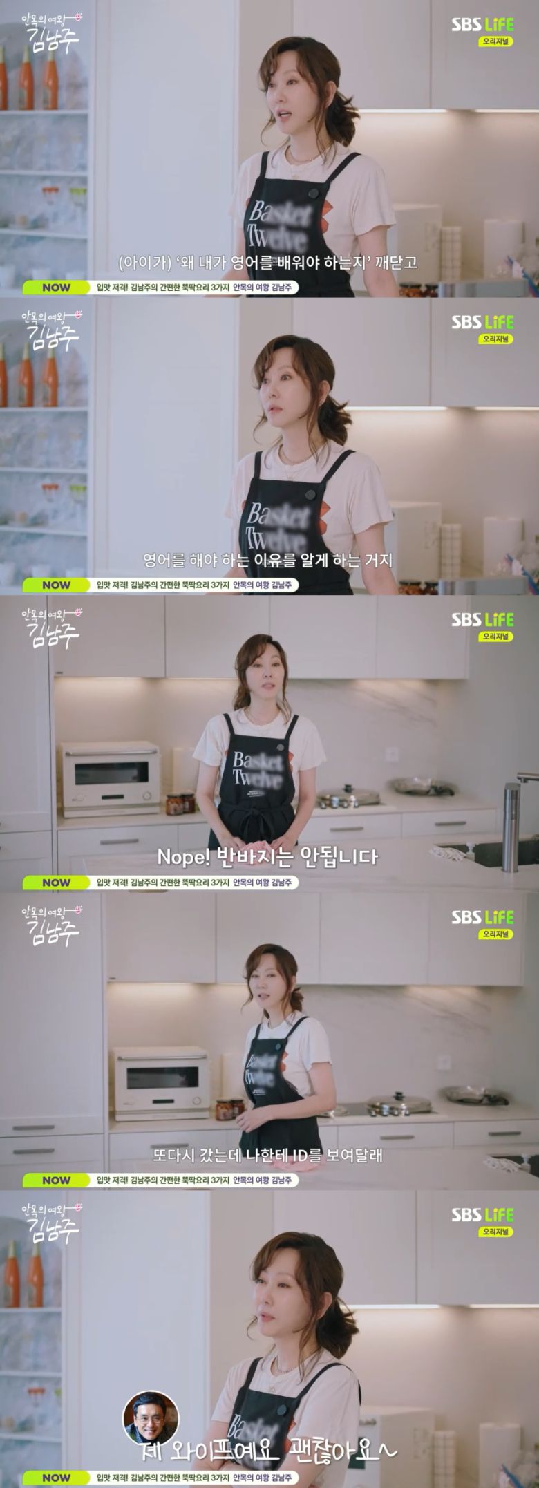 김남주는 "그래서 '아이를 낳으면 꼭 영어를 가르치리라' 그래서 하와이에 가게 된 계기다. (아이가) '왜 내가 영어를 해야 하는구나' 깨닫고 영어를 해야 하는 이유를 알게 하는 거였다"라고 전했다.