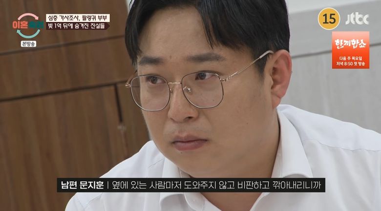 남편은 실제로 극단적인 생각까지 했다며 "금전적인 거로 힘든데, 옆에 있는 사람도 저를 비판하고 깎아내리니까, 혼자인 것 같은 느낌이 들어서 힘들었다"라고 고백했다.