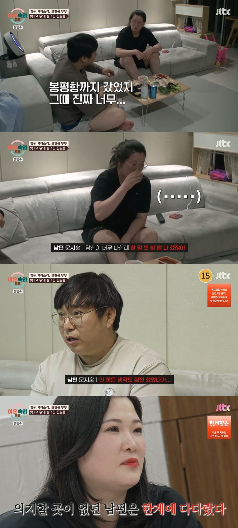 3일 방송된 JTBC '이혼숙려캠프'에서는 '팔랑귀 부부'의 남은 사연 및 솔루션 과정과 두 번째 부부의 가사 조사가 공개됐다.