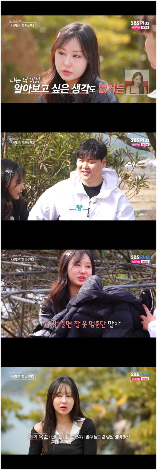 3일 방영한 ENA, SBS Plus 예능 ‘나는 SOLO, 그 후 사랑은 계속된다’(이하 ‘나솔사계’)에서는 최종 결정 하루를 앞두고 21기 옥순과 23기 영호가 진솔한 대화를 나누었다.
