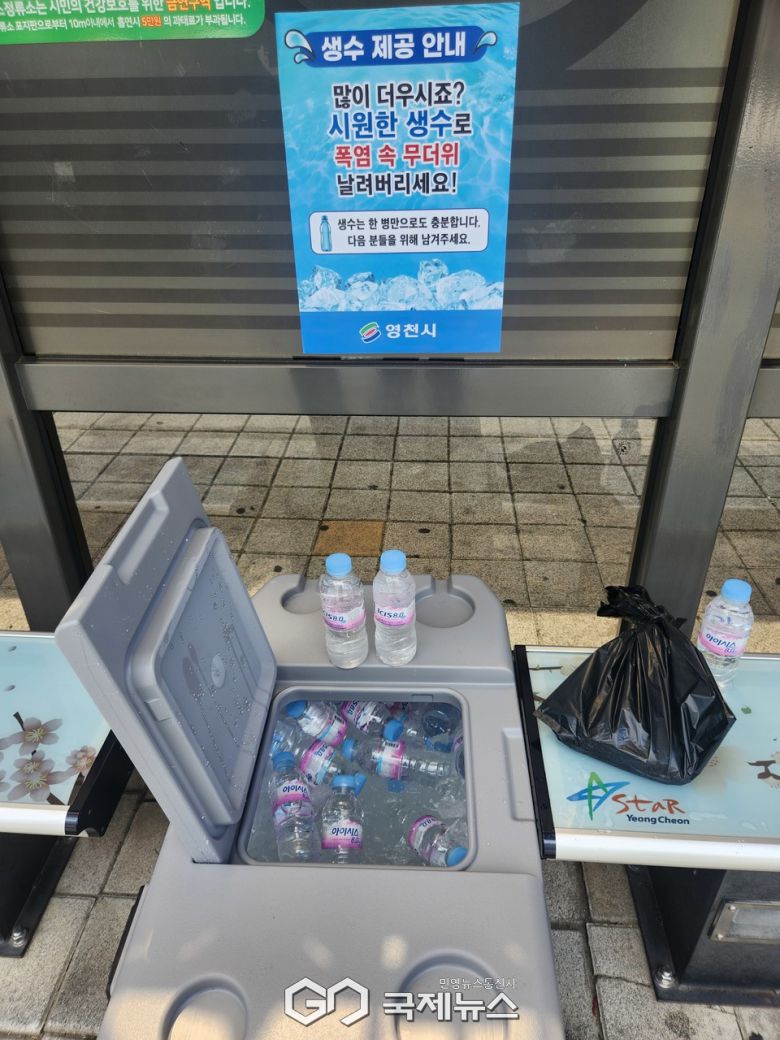 [김진태 기자] (영천=국제뉴스) 김진태 기자 = 버스를 기다리는 그늘 아래, 시원한 생수가 시민들을 맞이한다. 영천시가 무더운 여름을 맞아 시민들의 온열질환 예방을 위한 생활 밀착형 폭염대책을 내놨다.