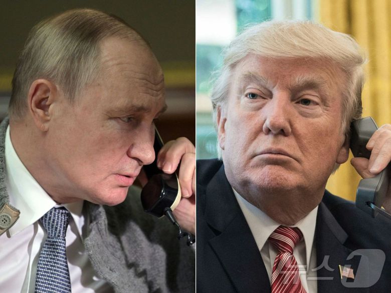 2021년 12월 27일 상트페테르부르크 외곽 스트렐나에서 통화 중인 블라디미르 푸틴 러시아 대통령(왼쪽)과 2017년 6월 27일 워싱턴 DC 백악관에서 통화 중인 도널드 트럼프 미국 대통령. ⓒ AFP=뉴스1 ⓒ News1 김진환 기자 |