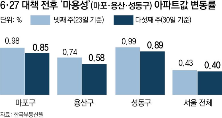 6·27 부동산 대책에 ‘불장’ 꺾여